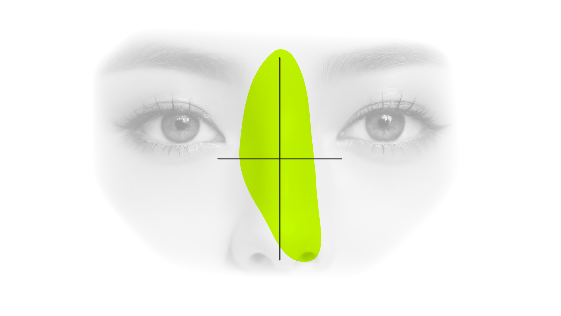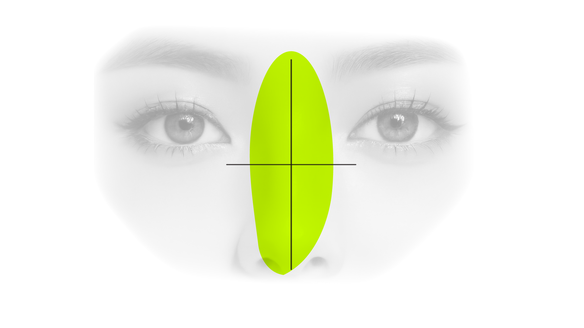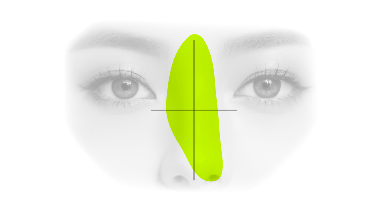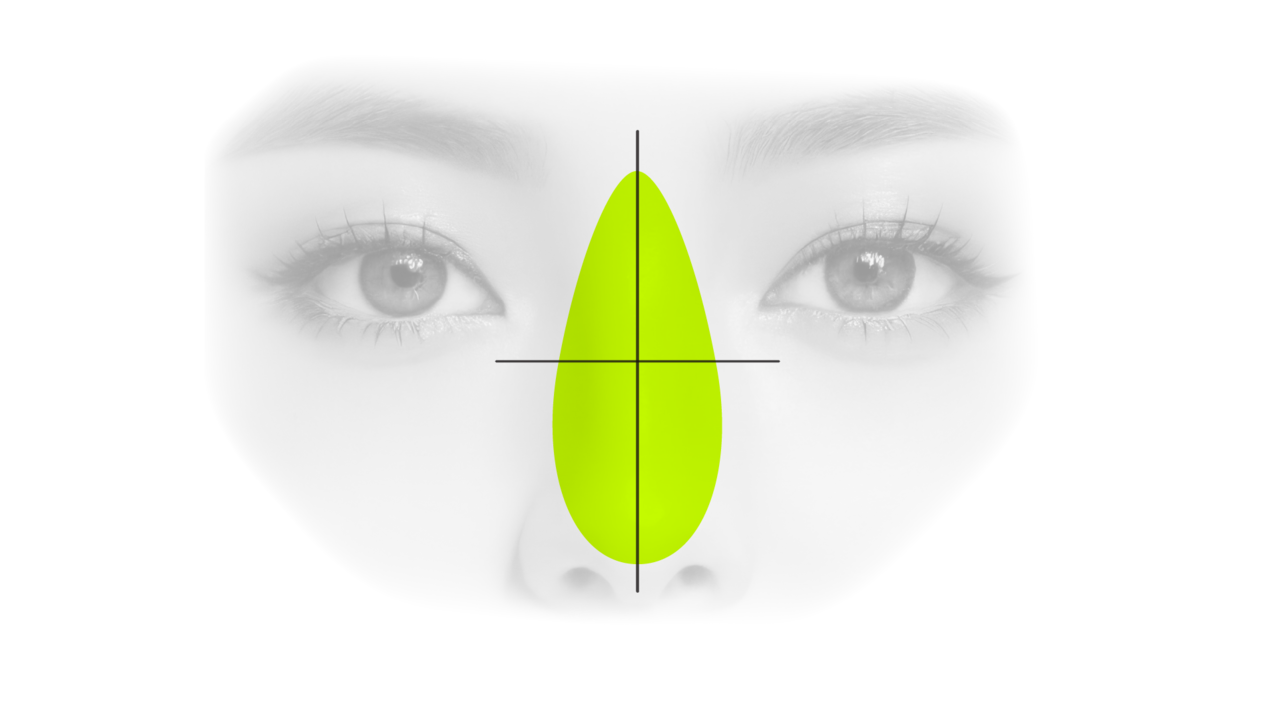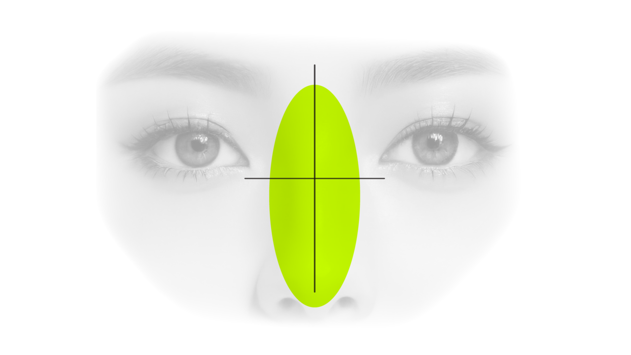 鼻の長さが長すぎると老けて見え、 短すぎるとダサく見えるので、 個人の顔の縦1/3のバランスに合わせて鼻 の長さを矯正します。